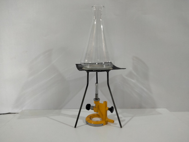 Tiene una base pesada por la que se introduce el suministro de gas. De allí parte un tubo vertical por el que el gas fluye atravesando un pequeño orificio en el fondo del tubo.