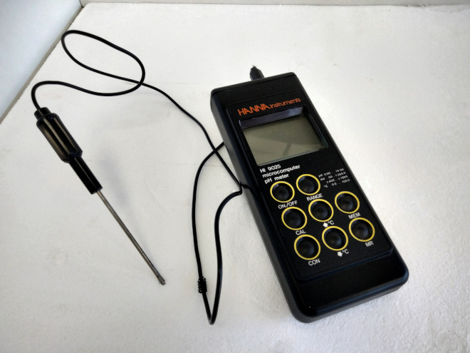 El pH-metro o potenciómetro es un sensor utilizado en el método electroquímico para medir el pH de una disolución. Fue creado por Arnold Orville Beckman en 1934.