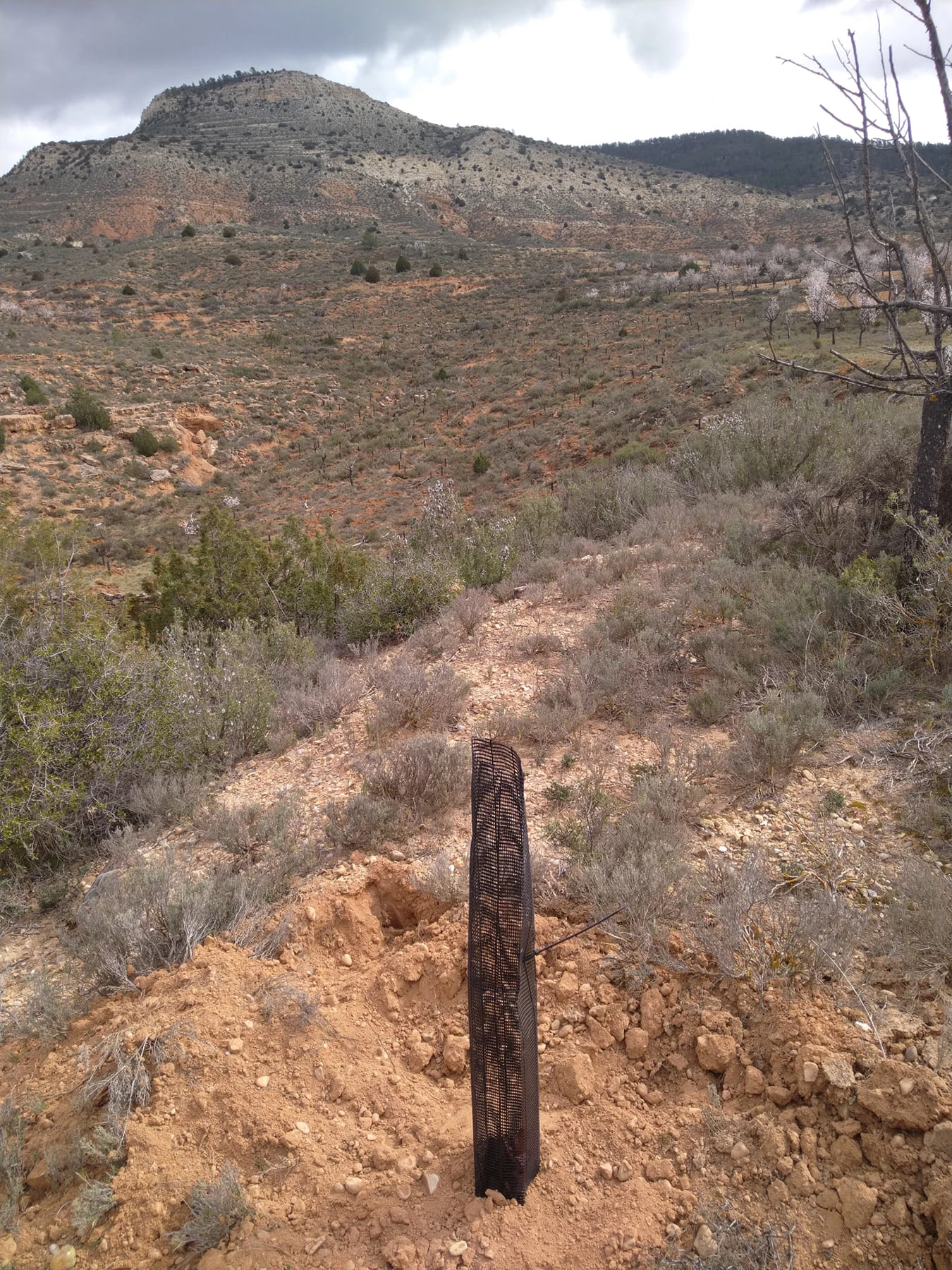 La plantación ha ido acompañada de medidas de protección para garantizar el establecimiento exitoso de las plántulas. Se han instalado más de 15.000 protectores individuales, junto con tutores de acacia.